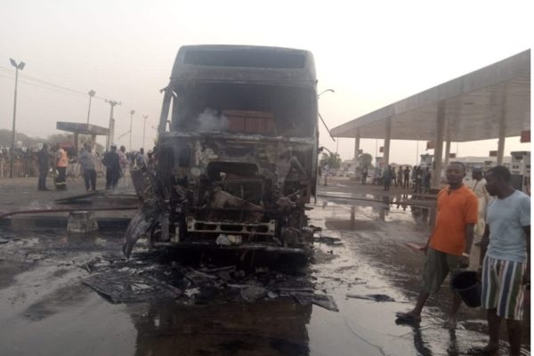 Alfijr ta rawaito wata tankar dakon man fetur ta kone a wani gidan mai na AA Rano, daura da babbar hanyar Abuja zuwa Lokoja, a …
