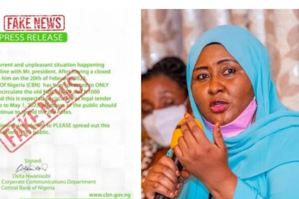 Alfijr ta rawaito Uwargidan Shugaban Najeriya, Aisha Buhari, ta musanta wallafa sanarwar da Babban Bankin Najeriya CBN ya wallafa a shafinta na Instagram ranar Talata, …